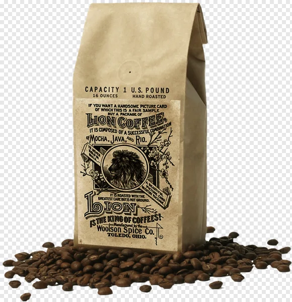 Download this high-quality, transparent PNG of a vintage Lion Coffee bag! Featuring a classic design with detailed typography and a lion illustration, this image is perfect for graphic design projects, coffee-themed artwork, packaging mockups, and more. Includes scattered coffee beans for added realism. Get your free download now and add a touch of retro charm to your creations! Ideal for designers, bloggers, and coffee lovers.