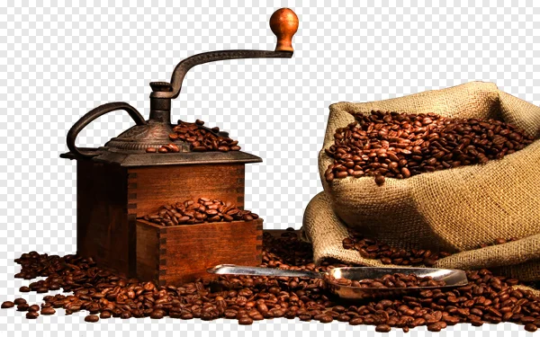 Download this high-quality PNG image of a classic, vintage coffee grinder alongside a burlap sack overflowing with roasted coffee beans. Perfect for coffee shop designs, food blogs, website graphics, or any project needing a rustic, caffeinated touch! This transparent background PNG is free to use for personal and commercial projects. Enhance your designs with this beautiful coffee-themed graphic today!