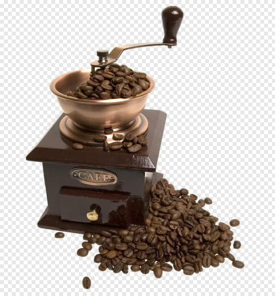 Download this high-quality vintage coffee grinder PNG image for free! Perfect for coffee shop designs, food blogs, illustrations, or any project needing a classic coffee aesthetic. This transparent background image features a beautiful, old-fashioned manual grinder overflowing with roasted coffee beans. Enhance your designs with this charming and versatile graphic – download now and add a touch of coffee culture to your work!