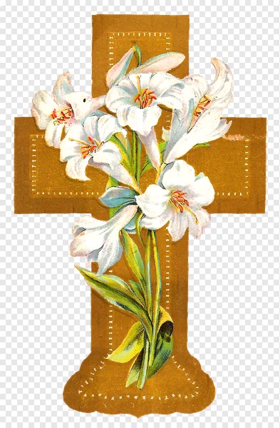 Tags: Christian cross Easter Easter lily PNG antique art antique illustration botanical cross floral flower free download gold cross purity religious remembrance resurrection spiritual transparent vintage white lilies