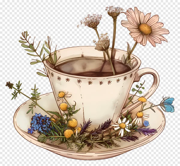 Tags: botanical art chamomile tea cottagecore graphic daisy art digital sticker floral teacup free PNG download garden flowers hand-drawn flowers herbs illustration lavender illustration nature aesthetic rustic illustration spring flowers summer botanicals tea party decor teacup PNG transparent background vintage tea cup wildflowers PNG