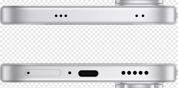 High-quality PNG image of a silver smartphone's top and bottom, showcasing details like the microphone holes, USB-C port, and speaker grilles. Perfect for UI design, mockups, or presentations. This clean, studio-quality image offers exceptional clarity and is easily adaptable to your project. Download this free PNG now and elevate your designs!