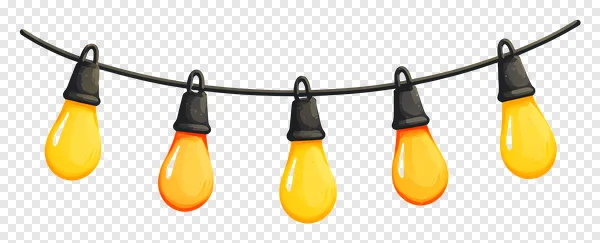 Illuminate your projects with this vibrant free PNG of warm festive string lights! Featuring a charming cartoon style with glowing yellow and orange bulbs strung on a dark wire, this transparent image is perfect for adding a cozy and celebratory touch. Ideal for party invitations, event flyers, website banners, social media graphics, or any digital design needing a touch of cheerful illumination. Download these high-quality decorative light bulbs with a transparent background instantly and brighten up your creative endeavors for free!