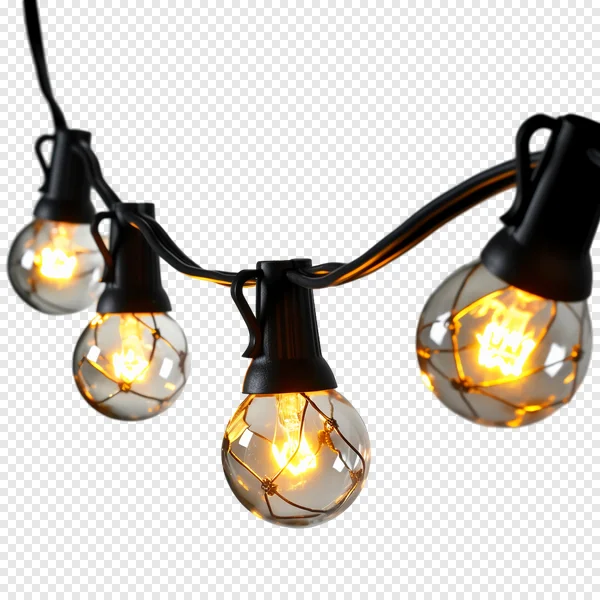 Download this exquisite free PNG of warm glowing vintage-style string lights, perfect for creating a cozy, festive, or romantic ambiance in your digital projects. Featuring classic incandescent bulbs with intricate, illuminated filaments and a transparent background, these decorative patio or party lights are ideal for enhancing banners, invitations, social media graphics, website designs, and any creative endeavor needing a touch of warmth. Get this high-quality, transparent string light image instantly to illuminate your designs for free!