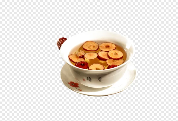 Discover our free PNG of a soothing Red Date (Jujube) Tea served in an elegant white Chinese ceramic cup on a rustic dark wooden background. This warm herbal beverage, often associated with traditional Asian wellness and 'subtle fragrance' as hinted by the cup's characters, features delicious sliced and whole jujubes floating in amber liquid. Perfect for health blogs, recipe sites, cultural presentations, or food and drink designs. Enhance your projects with this high-quality, free-to-download image, ideal for promoting health, comfort, and traditional Asian flavors. Get your free Red Date Tea PNG today!