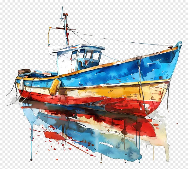 Download this stunning watercolor-style boat PNG image for free! Featuring a vibrant fishing vessel with a unique, artistic splash effect, this transparent background graphic is perfect for creative projects, digital art, website design, and more. Enhance your designs with this beautiful and high-quality illustration of a colorful boat. Free for personal and commercial use!