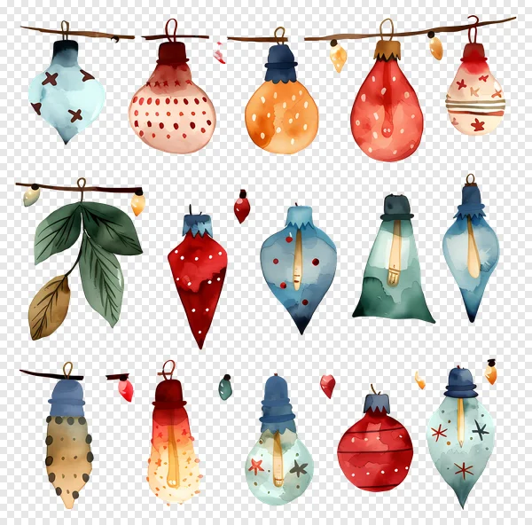 Brighten your projects with this enchanting collection of free watercolor Christmas lights and festive ornaments PNG! Featuring a variety of hand-painted string lights in vibrant reds, blues, oranges, and greens, along with charming holiday-themed designs like dots, stripes, crosses, and stars. Perfect for adding a warm, cozy, and whimsical touch to your holiday cards, digital scrapbooks, social media graphics, web design, or seasonal decor. The transparent background makes integration effortless. Download this high-quality, unique illustration for your personal and commercial creative needs today and make your designs shine!