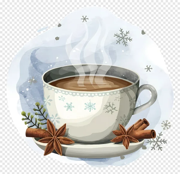 Tags: christmas cinnamon coffee cozy cup festive free png holiday hot cocoa illustration mug png snowflakes spices star anise steaming tea warm watercolor winter
