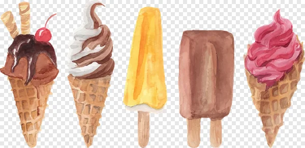 Cool off with this delightful watercolor illustration of ice cream cones and popsicles! Perfect for summer designs, food blogs, invitations, or any project needing a sweet touch. Download this high-quality PNG image for free and add a splash of color to your creations. Transparent background for easy integration. Get your free ice cream graphic now!