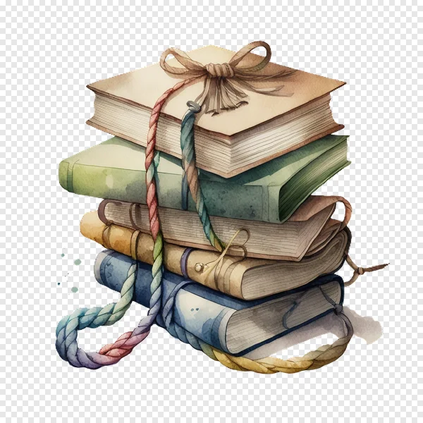 Download this charming, high-quality free PNG image featuring a beautifully rendered watercolor stack of vintage books. This unique illustration showcases several old books piled neatly, thoughtfully tied together with vibrant, colorful ropes, and adorned with a delicate bow on the topmost book. With its transparent background, this whimsical book stack is perfect for enhancing a wide range of digital projects, including educational materials, reading-themed designs, blog posts, scrapbooking layouts, presentations, or website headers. Ideal for book lovers, students, educators, and anyone seeking a touch of classic learning and artistic flair. Get your free download today and add a scholarly and cozy touch to your creative work!