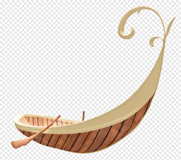 Discover our free, high-quality PNG of a whimsical wooden rowboat, featuring elegant cream-colored trim and a decorative swirling design. This unique boat, complete with a paddle, boasts beautiful natural wood planking and a graceful, crescent-like shape, perfect for a touch of fantasy. Ideal for graphic design projects, invitations, digital collages, websites, scrapbooking, and children's themes. Download this transparent PNG image instantly to add maritime charm or a creative element to your designs!