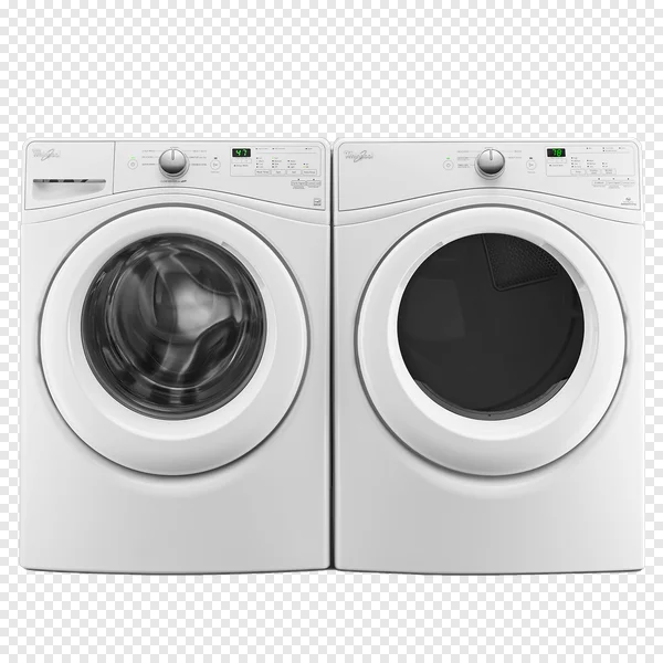 Download this high-quality PNG image of a Whirlpool washer and dryer set. Perfect for appliance websites, brochures, or presentations. The image features a clean, front-on view of the white appliances, showcasing their control panels and sleek design. Download now and add a professional touch to your projects! This crisp, clear PNG ensures effortless integration into your designs. Grab this free, high-resolution image today!