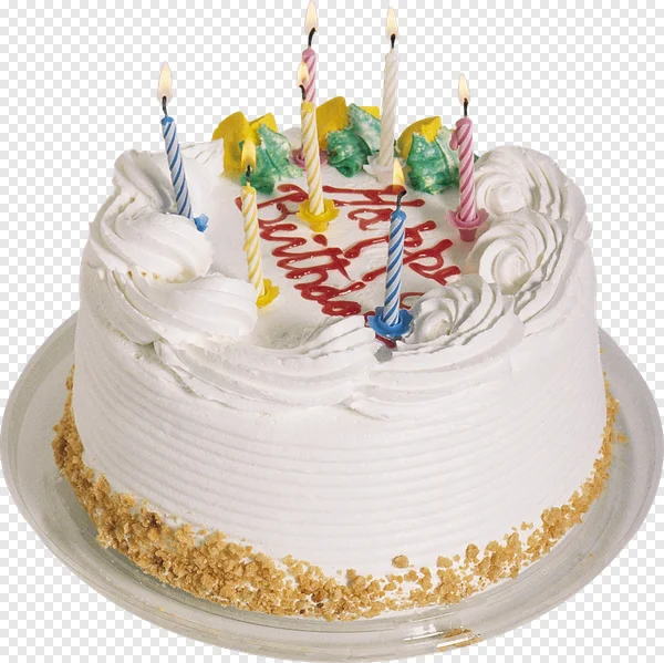 Celebrate any special occasion with this delightful White Birthday Cake with Lit Candles PNG image! Featuring smooth white buttercream frosting, colorful lit candles (blue, pink, white, yellow stripes), elegant decorative swirls, and a charming crumb base, this image captures the joy of a birthday. The visible "Happy Birthday" inscription adds to its festive appeal. Perfect for creating custom invitations, digital greeting cards, social media posts, website graphics, or party decorations. Download this high-quality, free PNG with a transparent background to add a touch of sweetness and festivity to your next project.