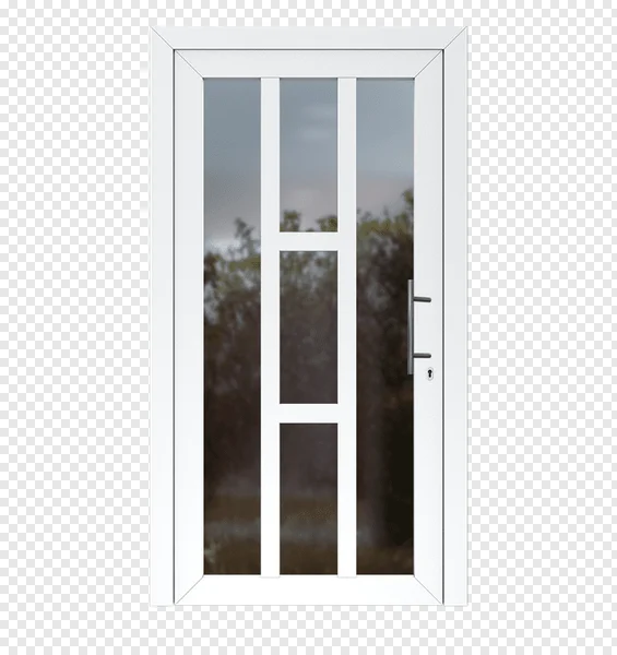 Download this high-quality PNG image of a modern white door with a glass pane featuring a stylish grid design. Perfect for architectural visualizations, interior design projects, or any project needing a clean, contemporary door image. The image is crisp, clear, and ready to use in your designs. Download now and elevate your visuals!