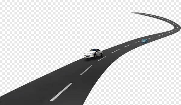 Download this high-quality free PNG image featuring a dynamic winding asphalt road with crisp white dashed lane markings. A sleek white car is prominently driving in the foreground, while a smaller blue car follows further down the curving path. This versatile transparent background PNG is perfect for graphic designers, web developers, and content creators looking to add elements of travel, progress, or journey to their projects. Ideal for presentations, website banners, digital art, or custom infographics. Enhance your designs with this free-to-use transparent road and car graphic. Get your free download today and effortlessly integrate into any background!