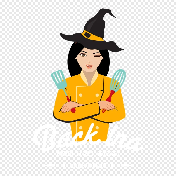 Conjure up some culinary magic with this charming free PNG of a winking witch chef! Dressed in a vibrant yellow chef's coat and a classic black witch hat, she confidently holds a blue spatula and a red whisk, ready to whip up enchanting treats. Her friendly wink adds a playful touch to this unique character illustration. Perfect for Halloween recipes, cooking blogs, restaurant promotions, bakery logos, or any project needing a whimsical touch of kitchen wizardry. This high-resolution transparent PNG is available for instant download to add a magical ingredient to your designs.