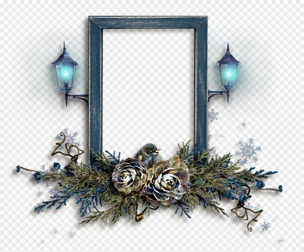 Transform your holiday and winter designs with this enchanting free Winter Wonderland frame PNG. Featuring a rustic distressed blue wooden frame, sparkling street lanterns, delicate snowflakes, and a lush evergreen garland adorned with festive blue berries, stylized pinecones, and a charming little bird. Perfect for Christmas cards, digital scrapbooking, photo overlays, invitations, or adding a magical, cozy touch to any winter-themed project. Download this high-quality transparent PNG for a beautiful and rustic holiday feel!