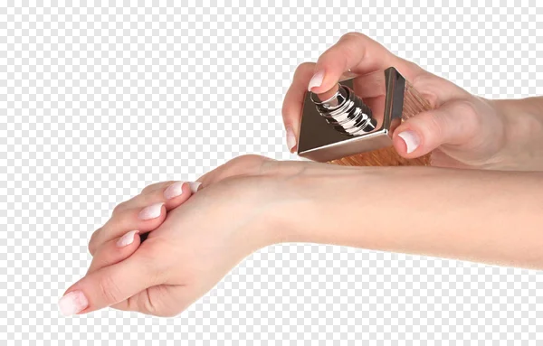 Download this captivating free PNG image featuring a woman's manicured hand gracefully spraying an elegant perfume onto her wrist. The detailed shot highlights the moment of fragrance application, perfect for conveying luxury, personal care, and beauty. The sleek perfume bottle with its golden liquid and silver sprayer adds a touch of sophistication, making it ideal for beauty blogs, cosmetic advertisements, skincare promotions, or lifestyle content. Use this high-quality transparent PNG for your next project, enhancing your designs with a touch of elegance and allure. Free to download for personal and commercial use!