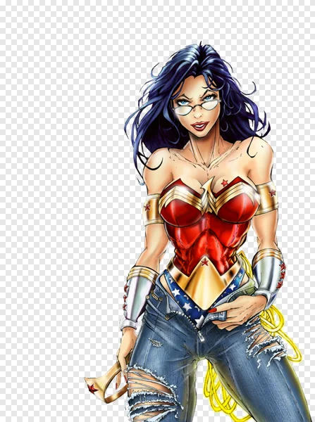 Download this stunning Wonder Woman PNG image for free! Featuring a modern, casual take on the iconic superhero, she's depicted in ripped jeans, her classic bodice, and glasses. Perfect for graphic design, digital art, fan projects, and more. High-resolution and transparent background for easy editing. Get your free Wonder Woman PNG now and unleash your creativity!