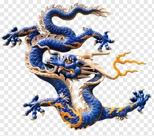 Majestic Blue Chinese Dragon PNG Image Free Download - Ornate Mythical Asian Creature Sculpture with Golden Accents & Transparent Background